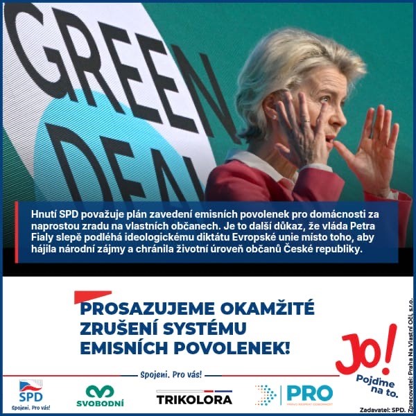 Hnutí SPD dlouhodobě a důrazně požaduje okamžité zrušení systému emisních povolenek, který považujeme za nástroj bruselského zeleného fanatismu, jenž škodí českým občanům a devastuje naši ekonomiku. Na systém emisních povolenek, prosazovaný v rámci tzv. Green Dealu EU, máme dlouhodobě jasný a neměnný postoj: odmítáme ho jako škodlivý, nespravedlivý a likvidační pro české občany. Říkáme jasné […]