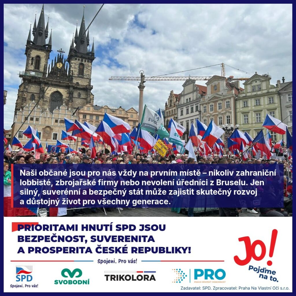 Prioritami hnutí SPD jsou bezpečnost, suverenita a prosperita České republiky