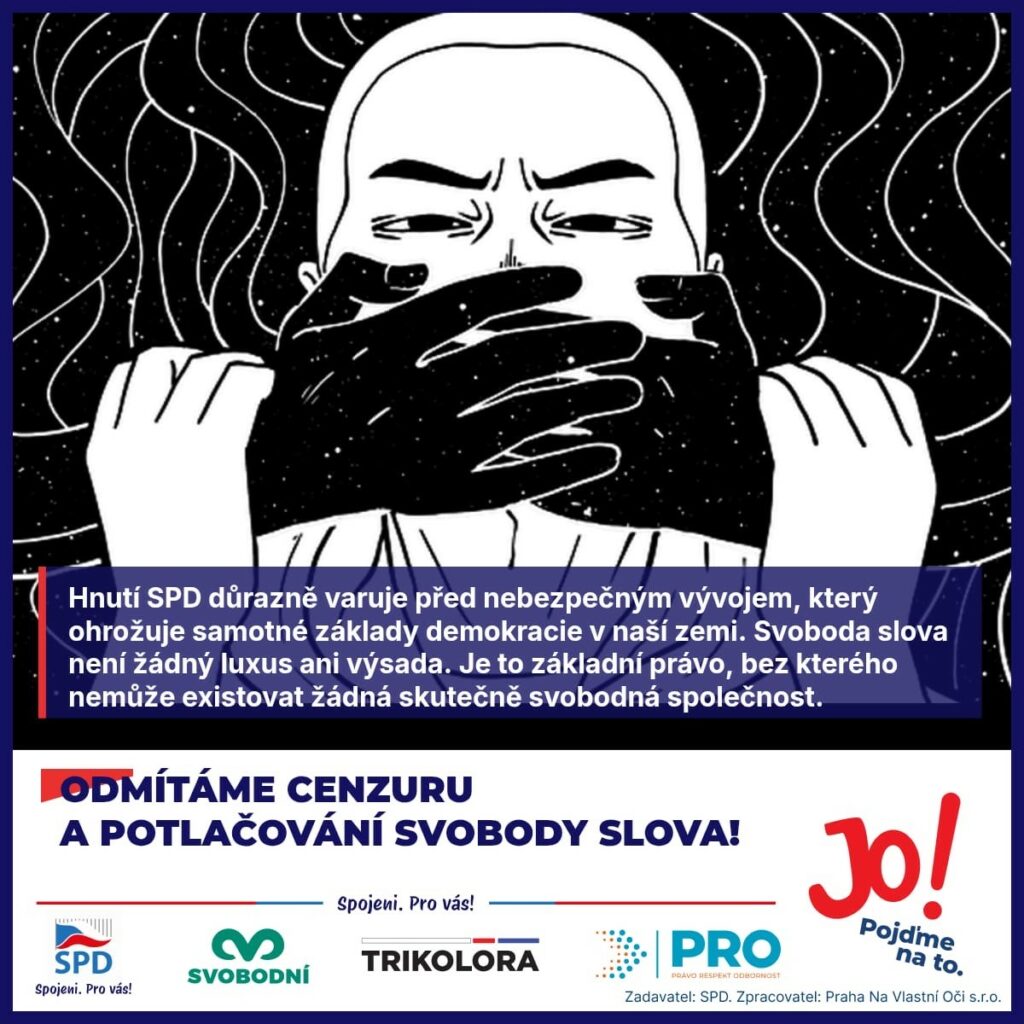 Vláda Petra Fialy vede Českou republiku směrem k cenzuře, umlčování názorových oponentů a kontrole veřejného prostoru. Pod falešným praporem „boje proti dezinformacím“ sledujeme systematické omezování svobody projevu a likvidaci svobodné diskuze. Hnutí SPD důrazně varuje před nebezpečným vývojem, který ohrožuje samotné základy demokracie v naší zemi. Svoboda slova není žádný luxus ani výsada. Je to […]